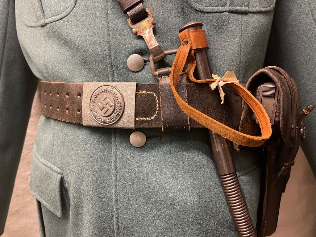 File:Nazi Germany Police Ordnungzpolizei Uniform belt buckle Koppelschloss Swastika Gott mit uns Telescopic spring steel cosh Stahlrute Teleskopschlagstock Totschläger Femaru M37 pistol holster Hjemmefrontmuseet Rakkestad WW2 museum.jpg – Wikimedia Commons, Photo by wikimedia.org, is licensed under CC BY-SA 4.0