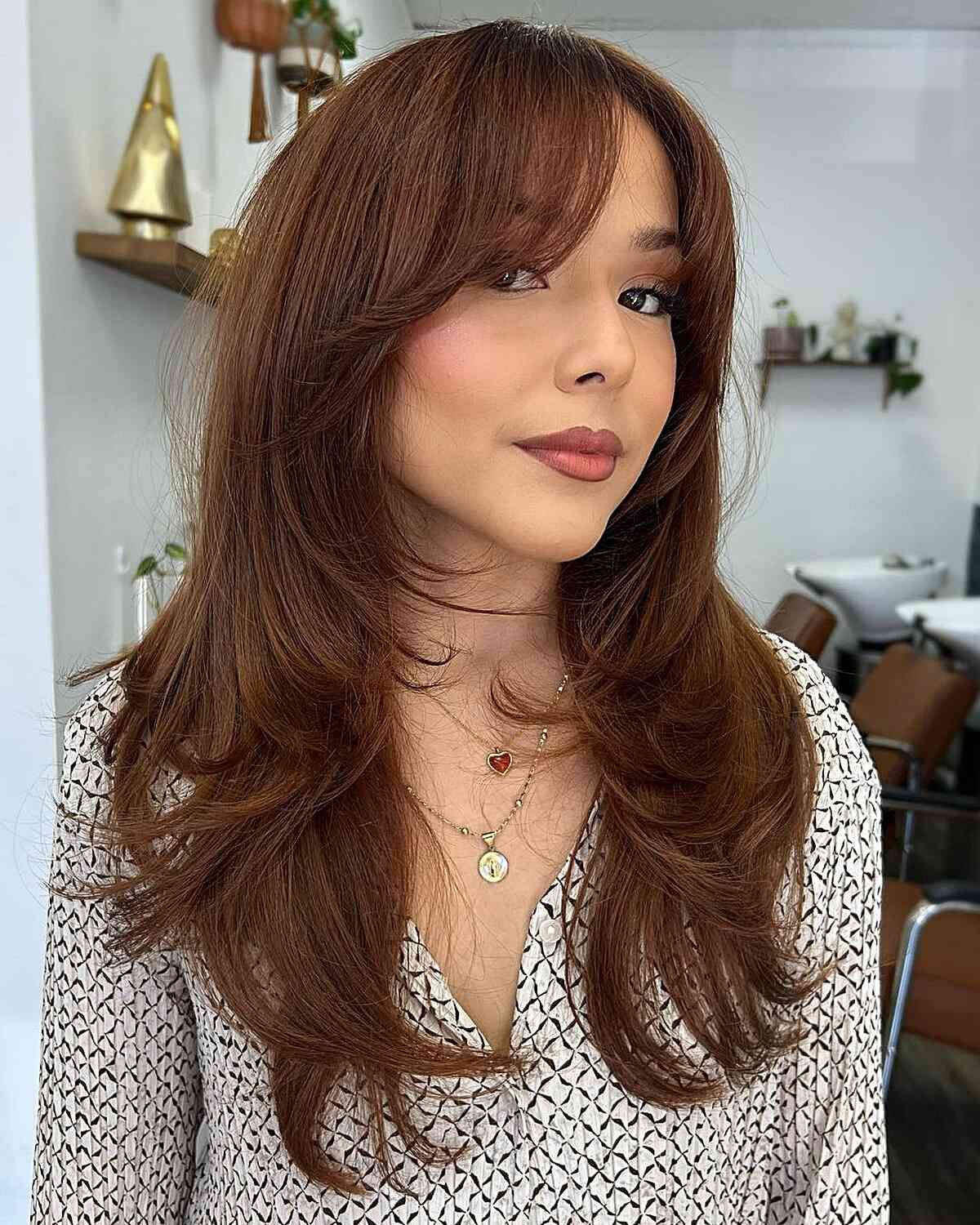 Embrace your inner rock-chic with a modern take on the layered shag, softened beautifully by the inclusion of a curtain fringe. This style is all about bringing an edgy, bold personality to your look while maintaining an approachable and truly cool vibe. It’s a fresh twist on a retro classic that feels entirely current.