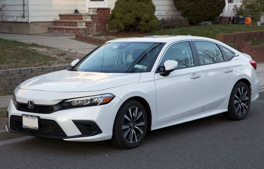 File:2022 Honda Civic Sedan EX in Platinum White Pearl, front left.jpg – Wikimedia Commons, Photo by wikimedia.org, is licensed under CC BY-SA 3.0