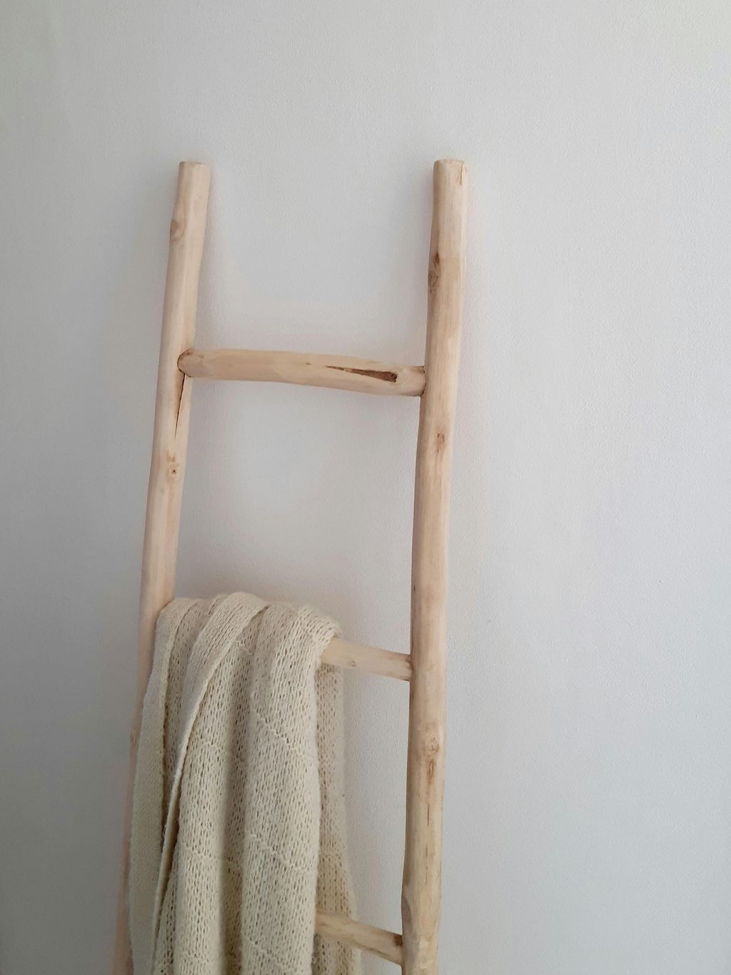 Create an elegant towel display by leaning a stylish towel ladder against a clear wall. This instantly adds a chic and accessible touch, making your towels a beautiful part of the room’s design rather than just functional items.