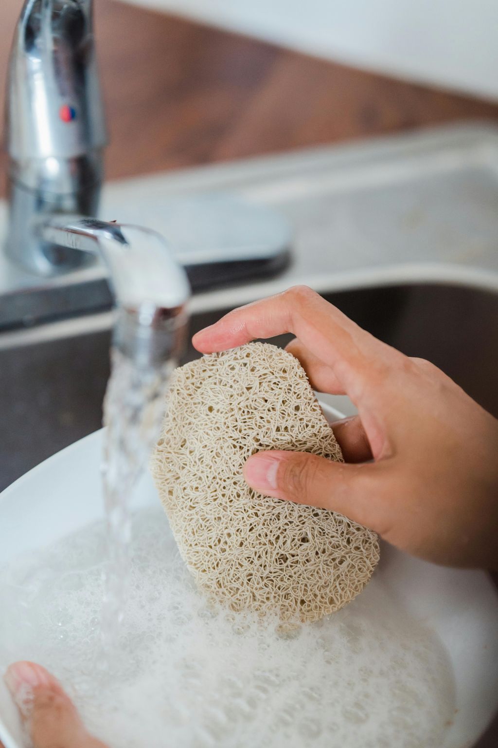 Close-Up Photo of Person Cleaning a Plate with Scrub · Free Stock Photo, Photo by pexels.com, is licensed under CC Zero