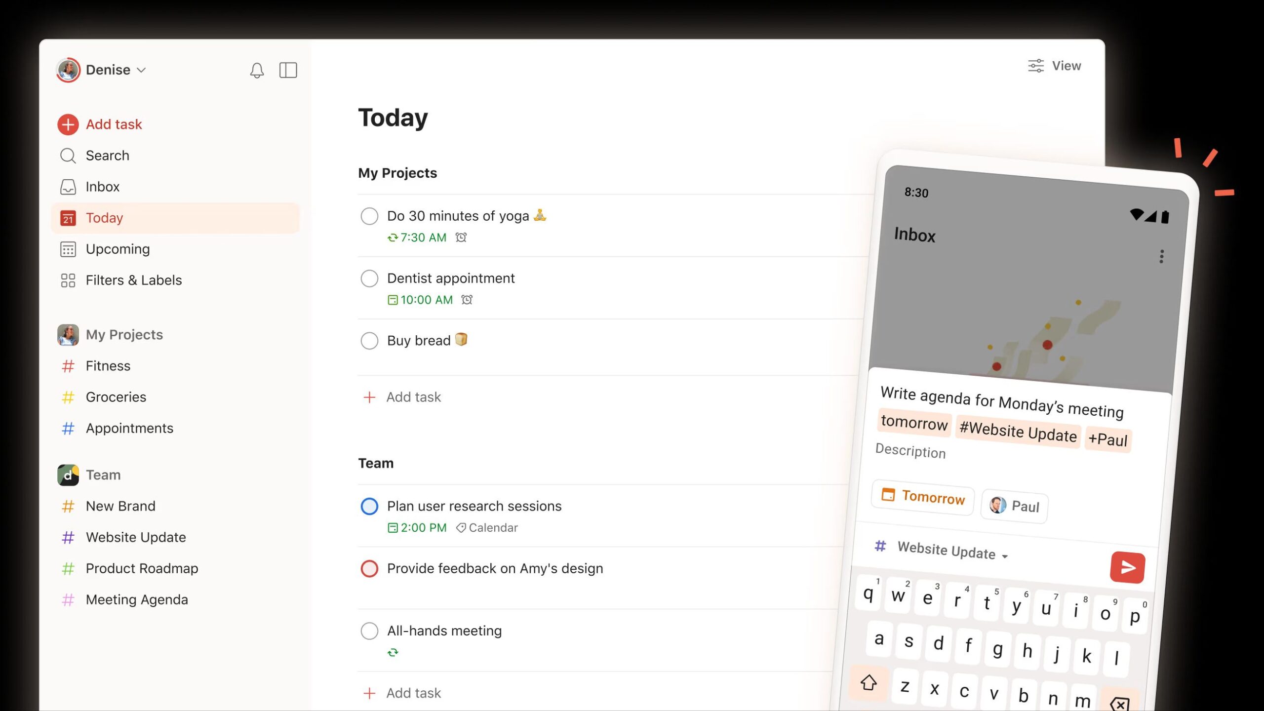 4.The sheer volume of tasks and deadlines in remote work can be overwhelming, often too much for a simple paper to-do list. Trying to remember everything while figuring out what’s most important can increase stress and lower efficiency. This is where task management apps like Todoist shine, turning mental clutter into clear, organized actions.